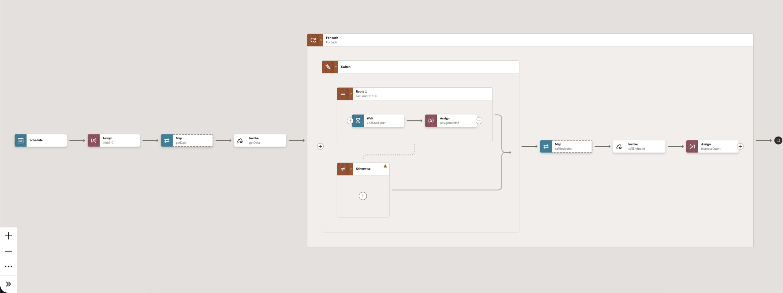 Um dies zu verhindern, bauen wir einen „Chill-Out“ Step in die Integration ein und geben der Integration Zeit, um das Request-Limit abzuwarten und dann den nächsten Schwung an Daten zu übertragen.