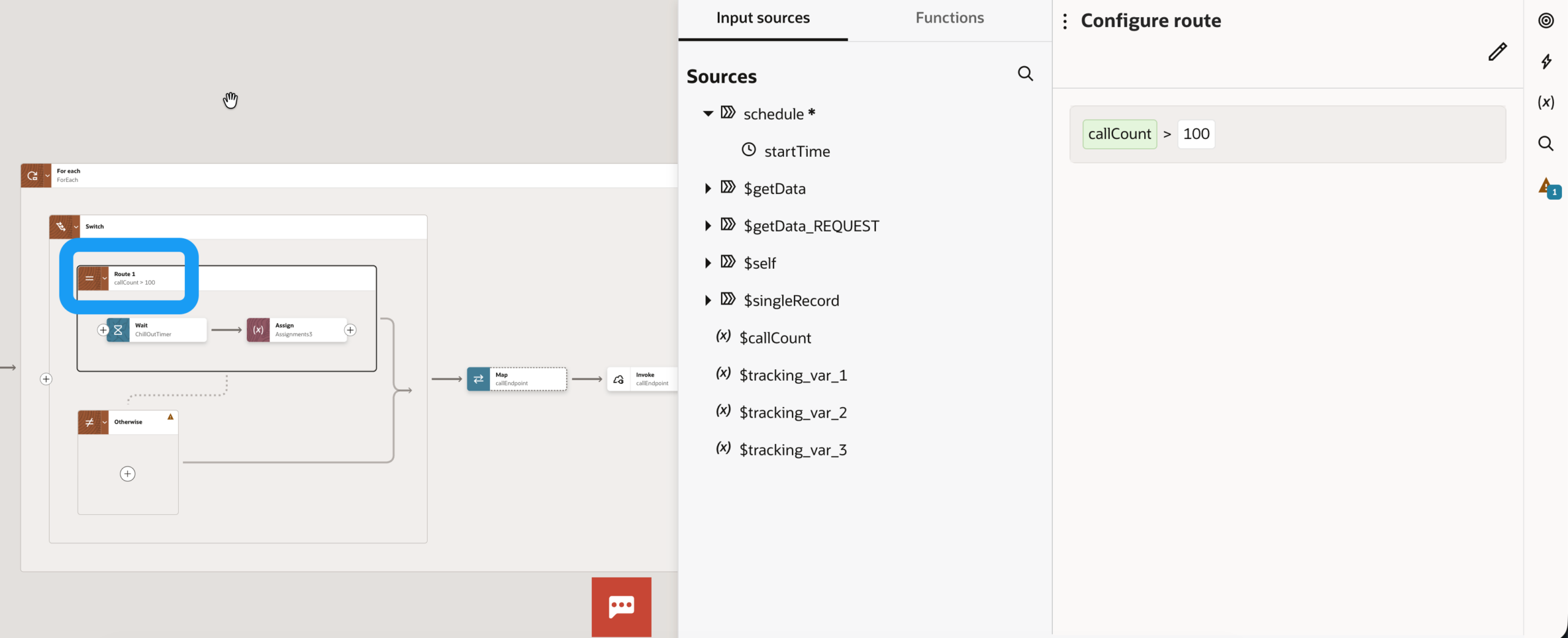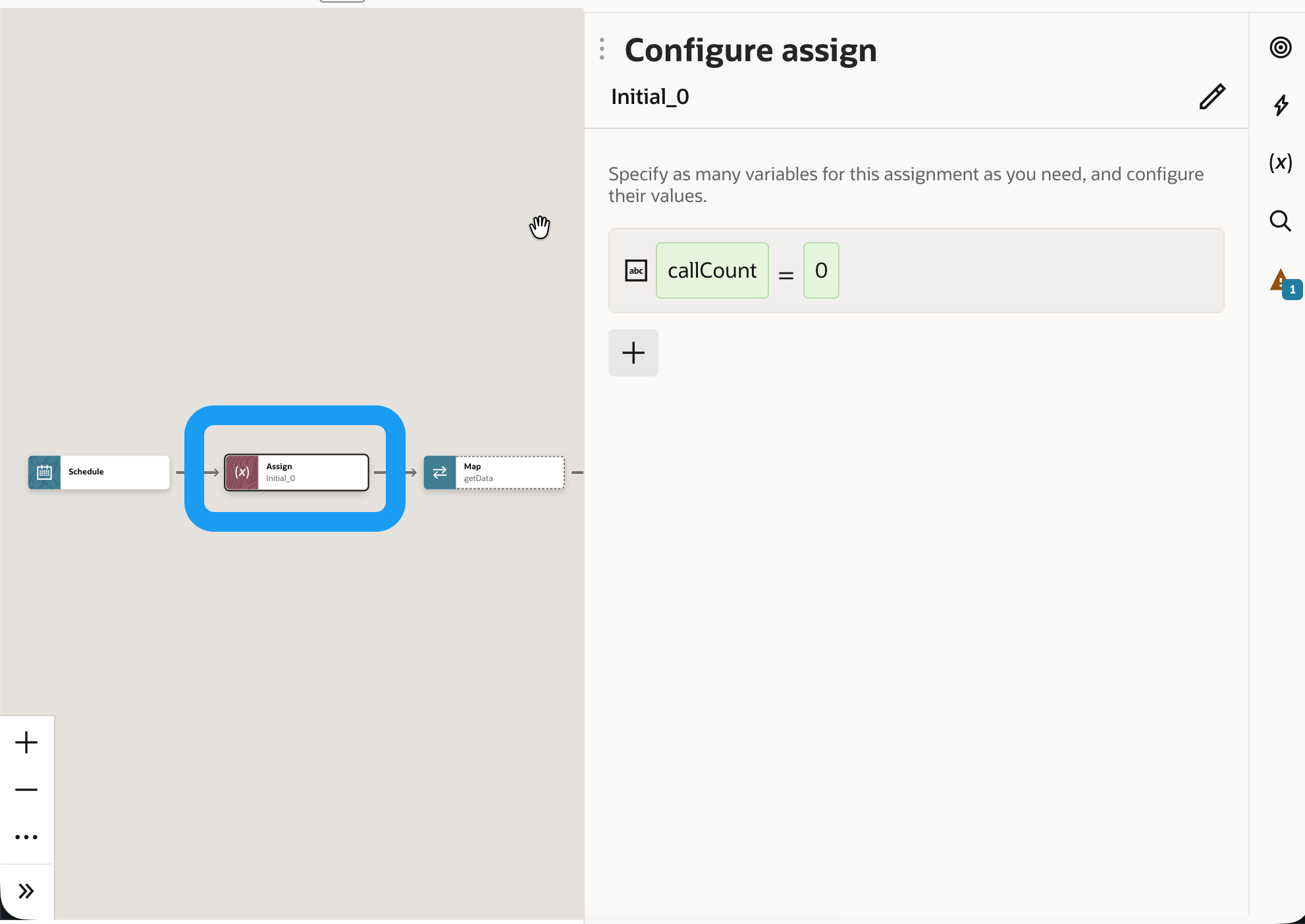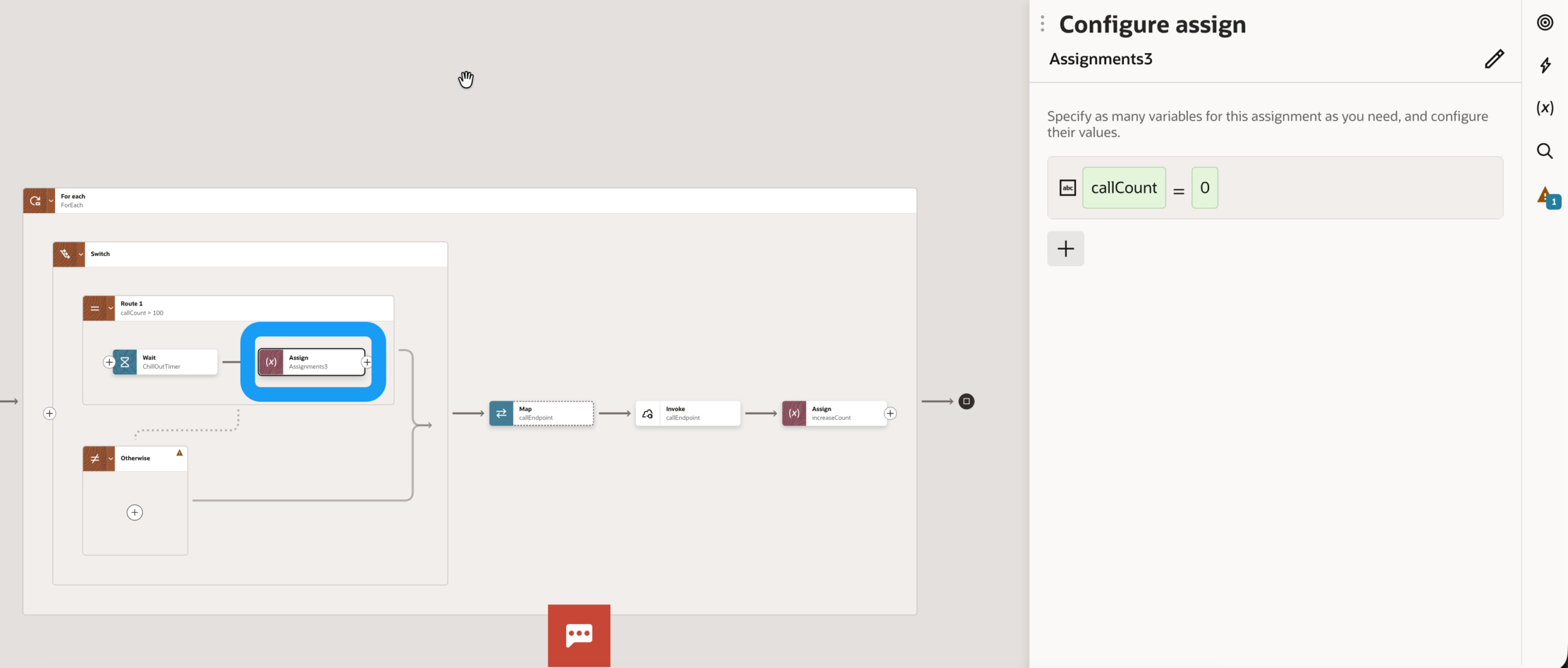 Vor die For Each Schleife setzen wir eine Variable (z.B. callCount) mit dem Wert 0. Diese Variable zählt für uns die Aufrufe.