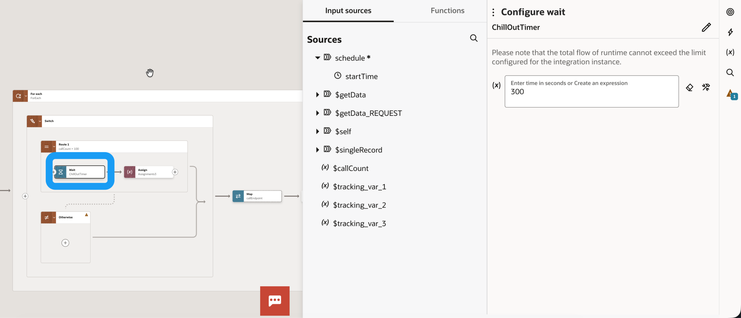 Wir lassen die Integration nun so lange abkühlen, bis es sicher ist, die Ziel-Schnittstelle wieder aufzurufen. In unserem Fall sind das 5 Minuten (300 Sekunden)